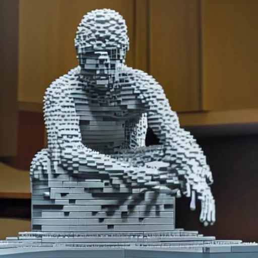 Prompt: a statue constructing a mind / brain piece by piece, highly detailed, artstation, smooth, sharp focus, clean shaped colored artwork by kim jung gi, leonardo davinci, mc escher, moebius, cyberpunk