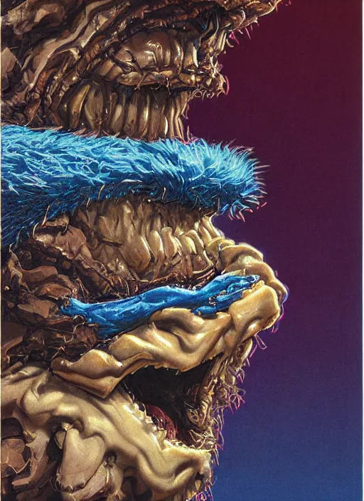 portrait of Cookie Monster in Videodrome (1983), highly detailed, centered, solid color backgroun...Show more