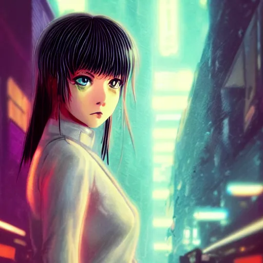 an anime cute girl in blade runner 2047