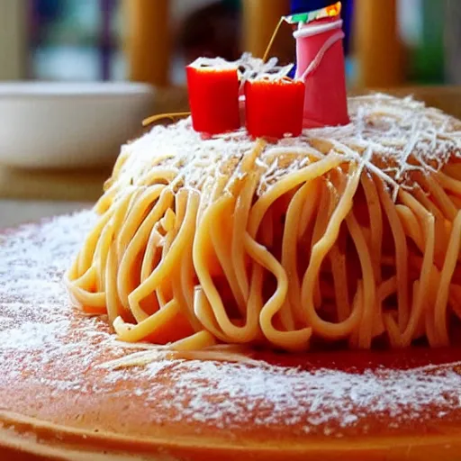 Birthday cake made of pasta and sauce