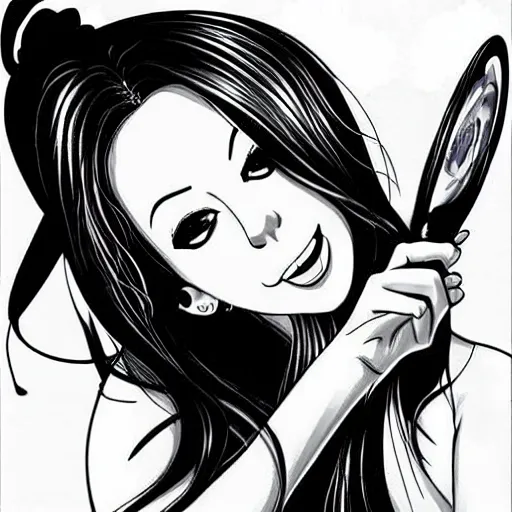 Prompt: an ink drawing of a front shot of a tech punk girl by ilya kuvshinov, black and white