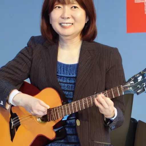 Prompt: real-life Yui Hirasawa playing with a Gibson Pre-'08 Les Paul Standard, a still of a Japanese music movie