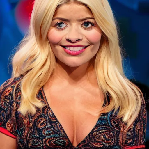 Holly Willoughby with the physique of a body builder, hyper realistic, ultra detailed, cinematic, dynamic lighting, photorealistic, refined, intricate, digital art, digital painting, masterpiece, 8k