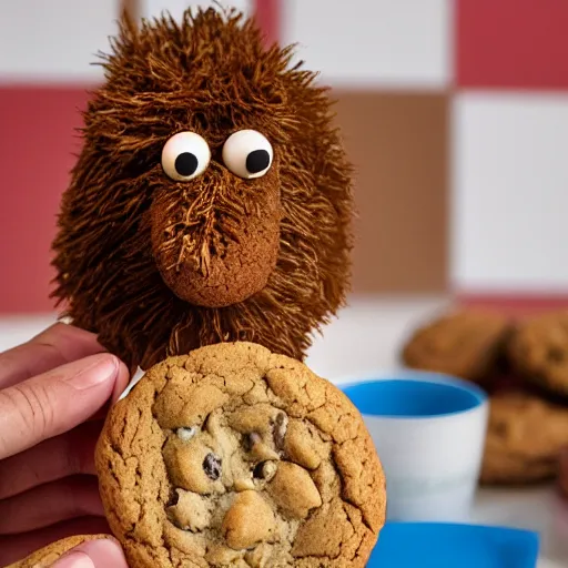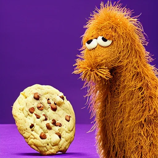 Prompt: the cookie monster angry because there are no cookies left. hyper realistic secret photograph