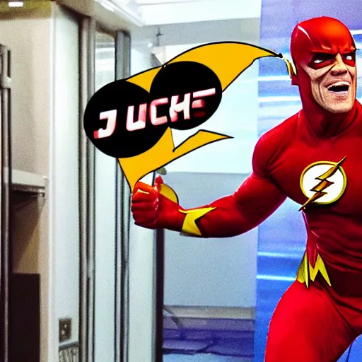 Prompt: film still of jack black as the flash in the new flash movie, 4 k