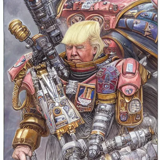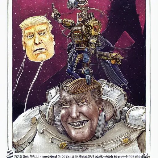 A stunning and lovable portrait of Donald Trump as a Warhammer 40K character Moebius, by Mattias Adolfsson, by Mandy Jurgens
