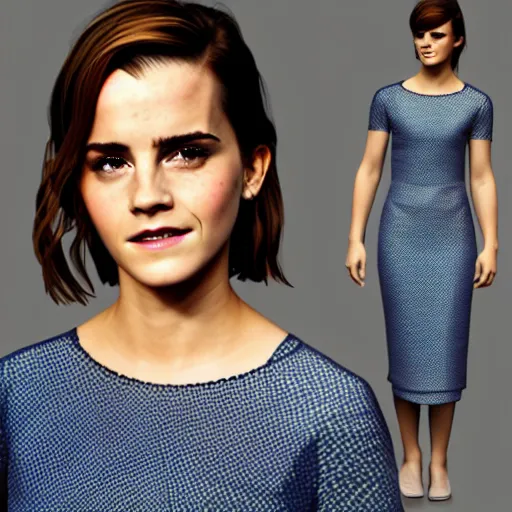 Prompt: a full - figure image of a woman who is a genetic combination of emma watson and kim kardashian