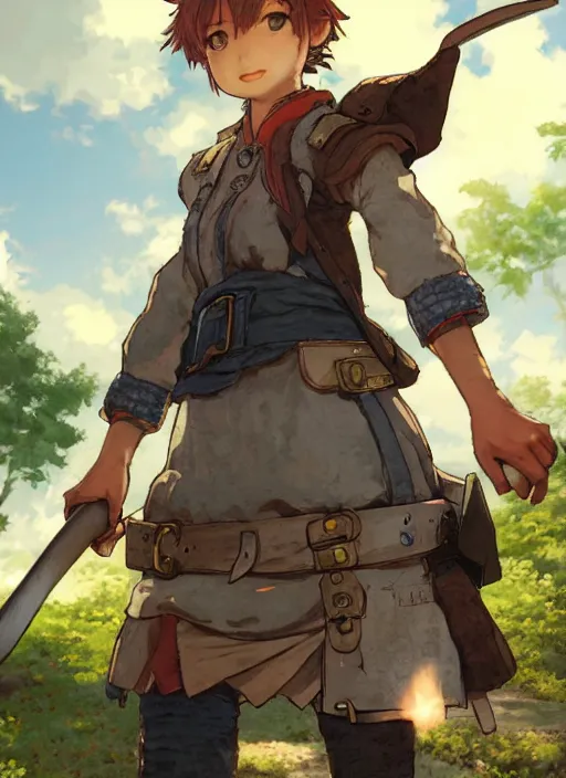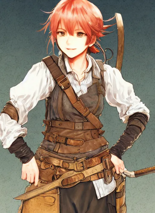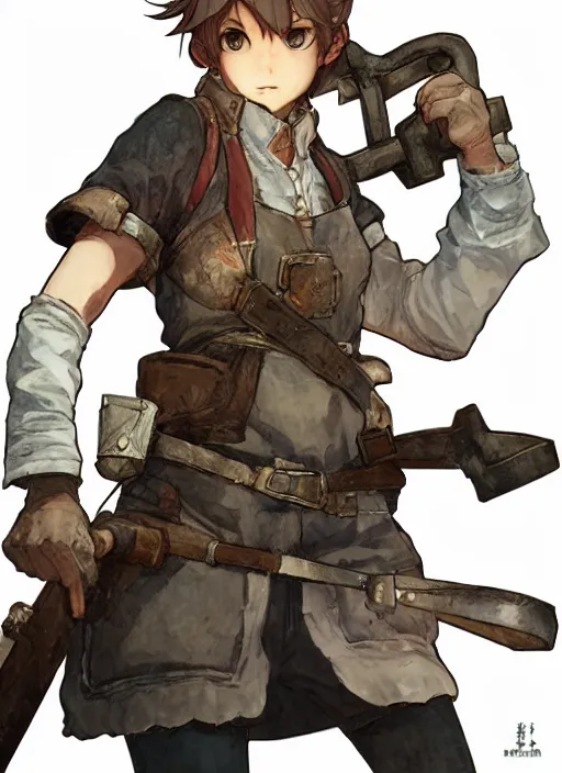 character portrait of a blacksmith tomboy, hidari, color page, tankoban, 4K, tone mapping, Akihiko Yoshida.