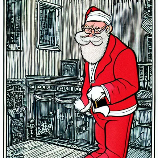 The Artwork of R. Crumb and his Cheap Suit Santa Claus tells you to be good , pencil and colored marker artwork, trailer-trash lifestyle