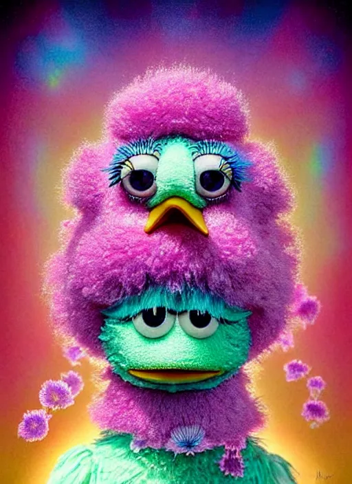 hyper detailed 3d render like a Oil painting - kawaii portrait Aurora (the muppet big bird) seen...Show more