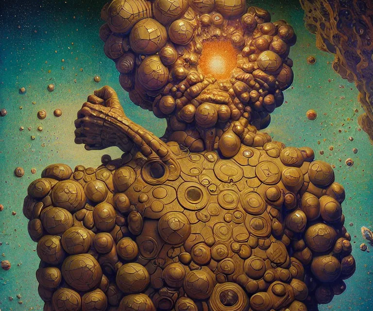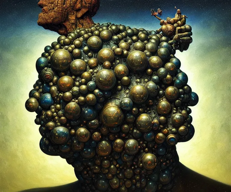hyper detailed 3d render like a Oil painting - atlas dramatically supporting the galaxy on his sh...Show more