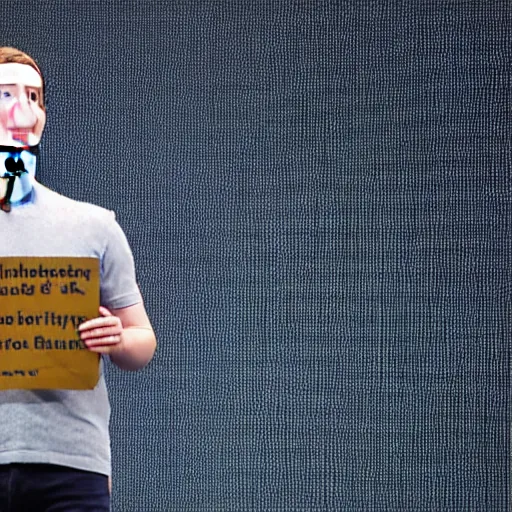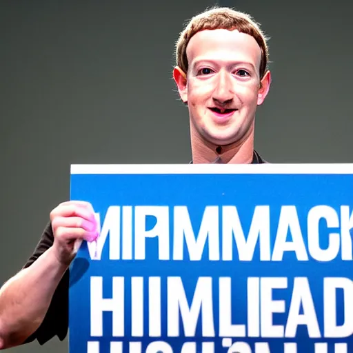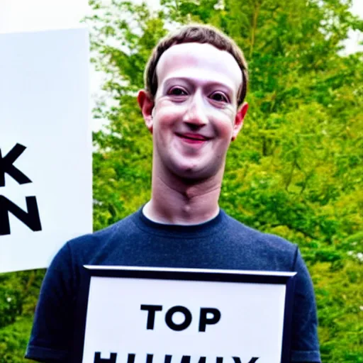 Mark Zuckerberg holding a sign saying I'm A Human, highly detailed, high quality, HD, 4k, 8k, Can...Show more