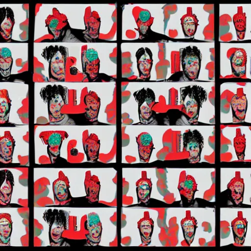 Prompt: red themed mashup with movie characters, marvel, disney, indie, highly detailed, featured on artstation, highly detailed, abstract