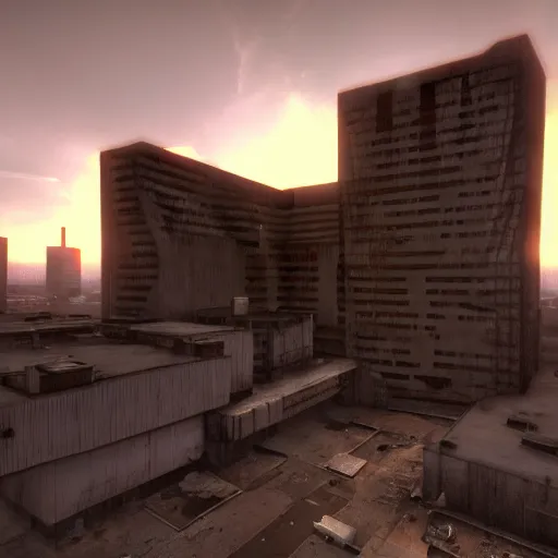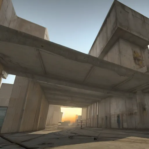 a Half life 2 level, from the 2004 PC game Half life, brutalist architecture, stunning volumetric...Show more