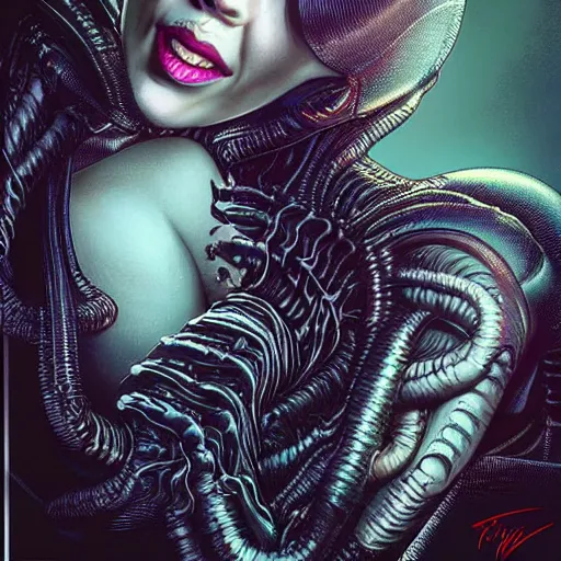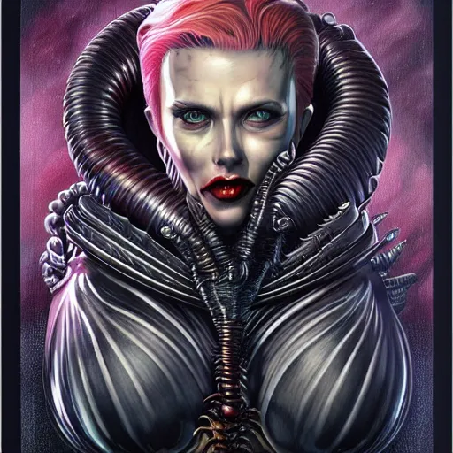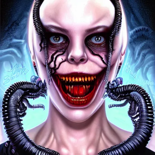 lofi scorn giger alien venom joker lovecraftian lovecraft portrait of scarlett johansson, Pixar style, by Tristan Eaton Stanley Artgerm and Tom Bagshaw.