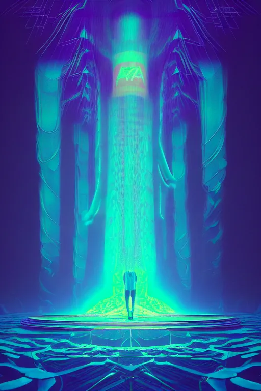 Prompt: goddess of illusion, beautiful, stunning, breathtaking, mirrors, glass, magic circle, magic doorway, fantasy, mist, bioluminescence, hyper - realistic, unreal engine, by rebecca sugar