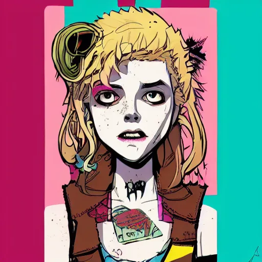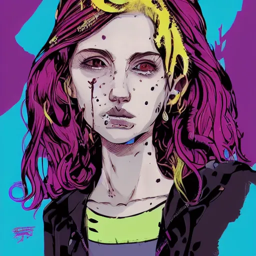 Highly detailed portrait of a punk zombie young lady with freckles and blonde wavy hair by Atey G...Show more
