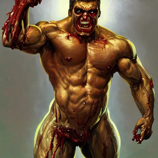 an portrait of an mutant buff zombie, highly detailed, centered, digital painting, artstation, concept art, donato giancola, Joseph Christian Leyendecker, WLOP, Boris Vallejo, Breathtaking