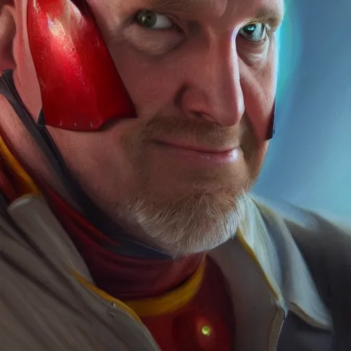 realistic Portrait painting of Kevin Feige as Homelander, made by Michaelangelo, physical painting, Sharp focus,digital art, bright colors,fine art, trending on Artstation, unreal engine.