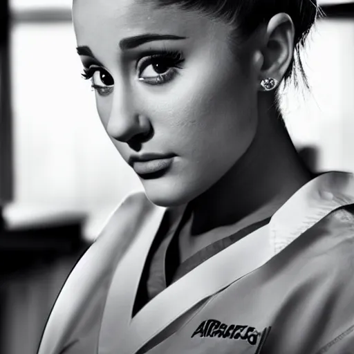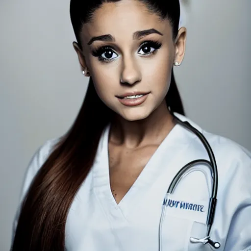 ariana grande as a nurse, photography, moody lighting, realistic,