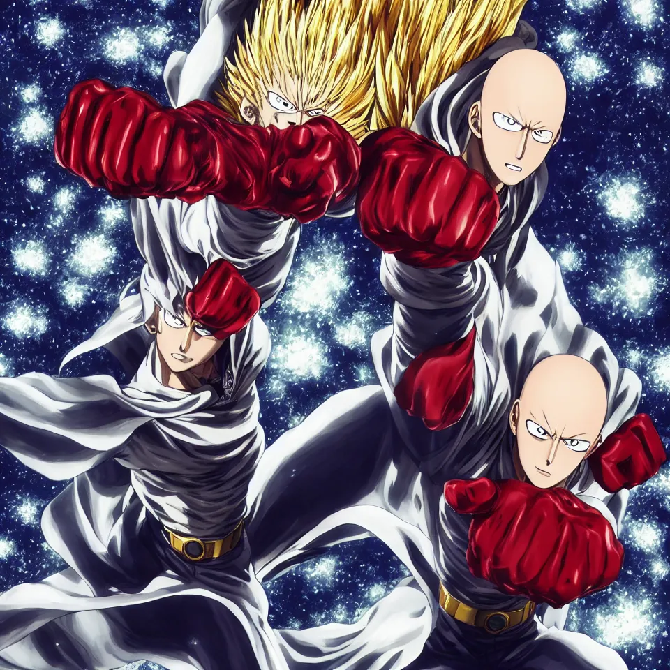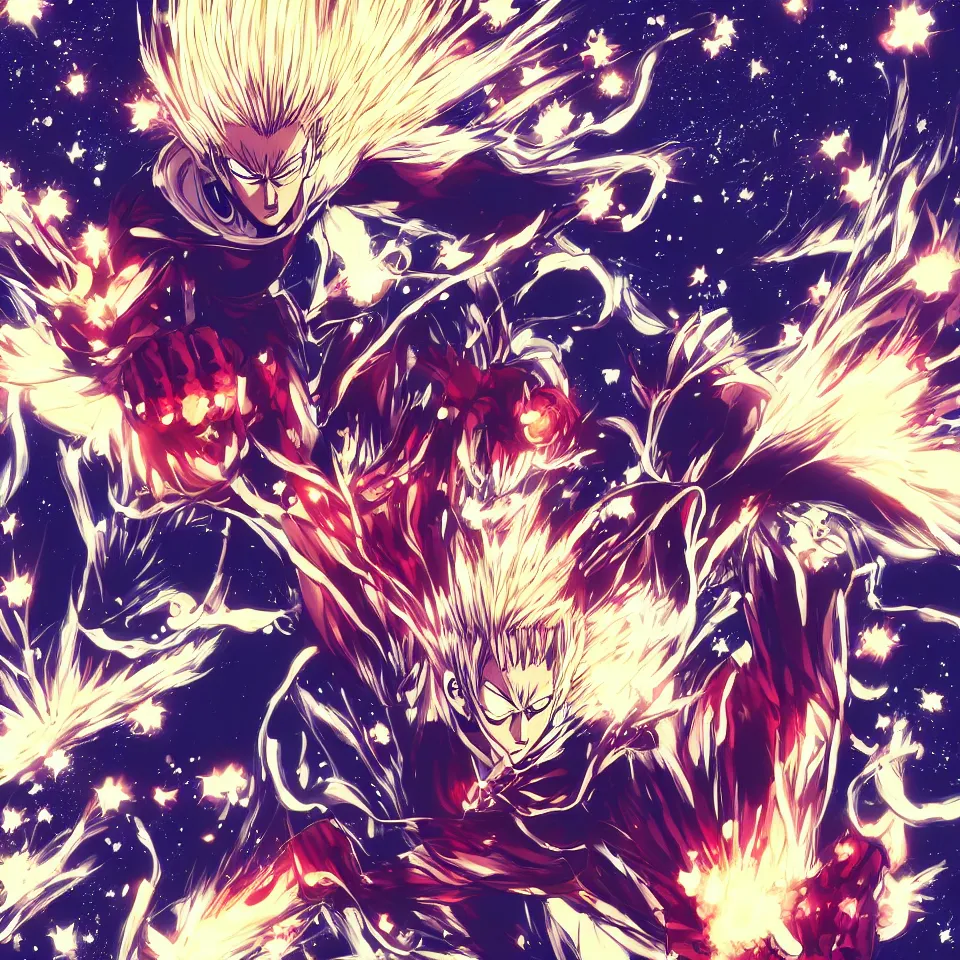 one punch man Garou made of stars, art by Yusuke Murata,centre composition, cinematic, trending on artstation, low level, 4K UHD image,