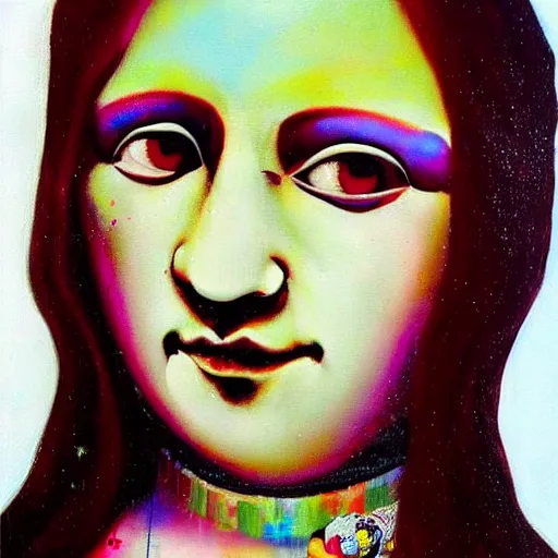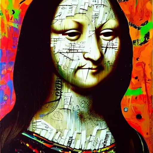 monalisa in the style of david choe!!!!!!!!!!, oil on canvas, by david choe!!!!!!!!!!