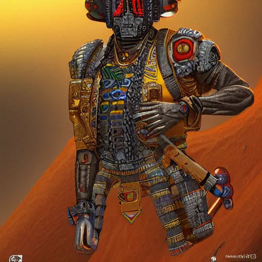 an Aztec cybernetic mercenary in the style of Jean Giraud detailed realistic High Resolution HD 8k