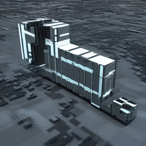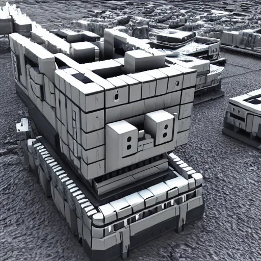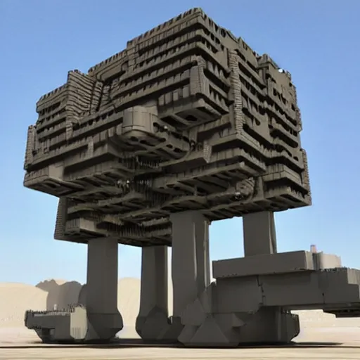 Sci-Fi industrial futuristic Brutalism brutalistic huge huge carrying carrier vehicle desert blocky