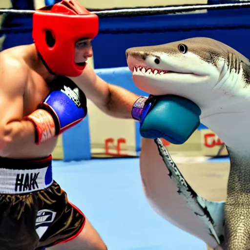 a shark boxer fighting a crocodile