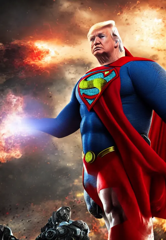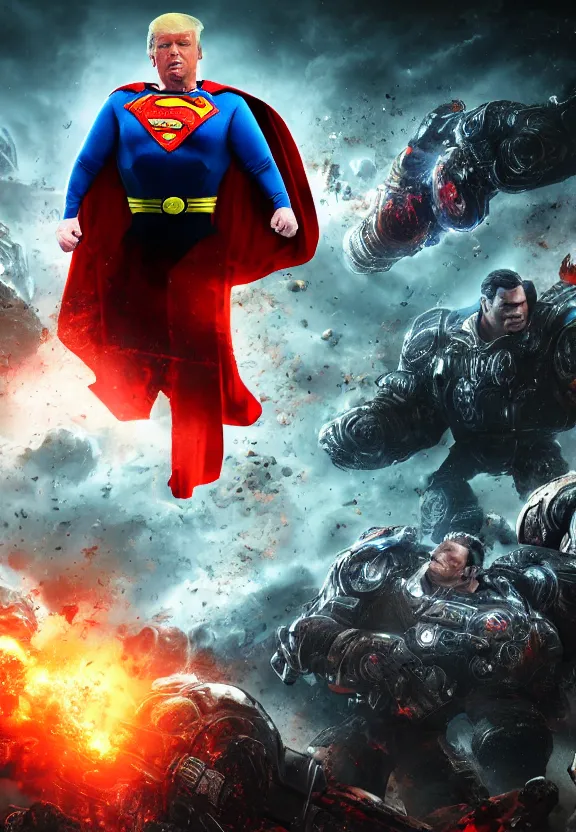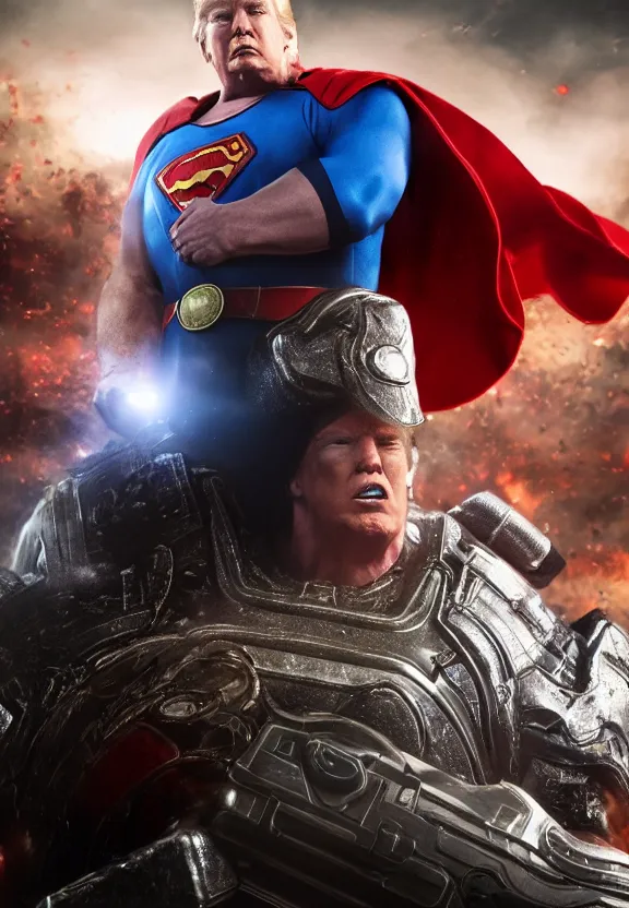 Portrait of Donald Trump as superman in Gears of War, splash art, movie still, cinematic lighting...Show more