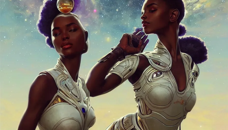 concept art of very very very very very very beautiful african woman, futuristic spacesuit, float...Show more