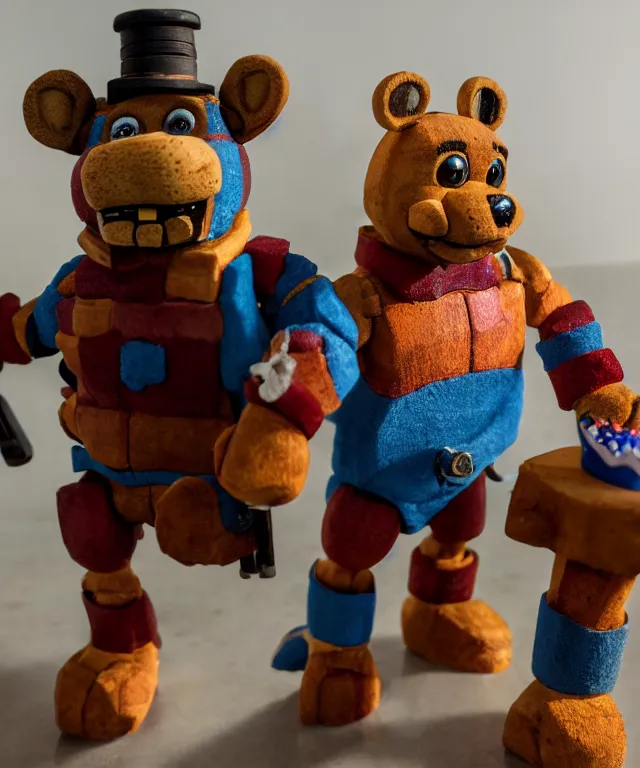 high quality presentation photo of Freddy Fazbear, photography 4k f1.8 anamorphic bokeh 4k Canon Nikon