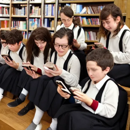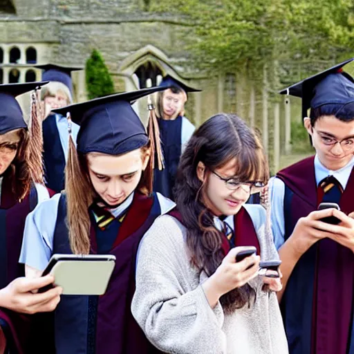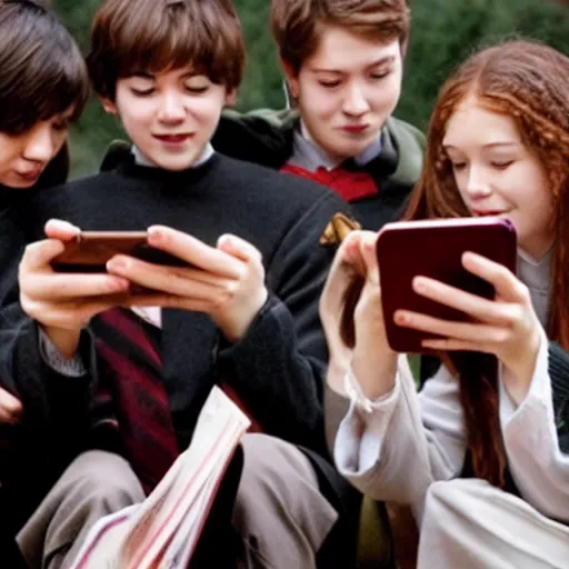 Photo of Hogwarts students looking at their smartphones