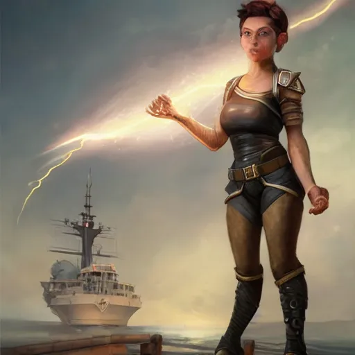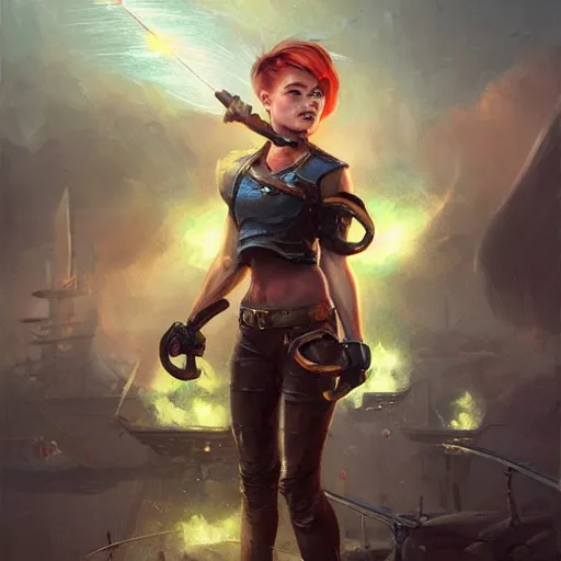 beautiful muscular female gnome engineer, casting lightning magic, short black pixie undercut hai...Show more