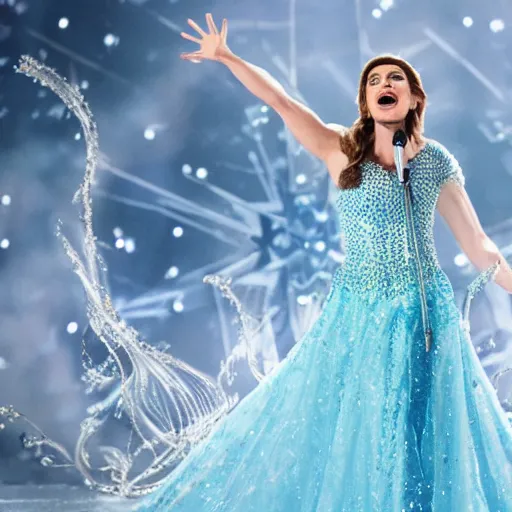 Prompt: laura boldrini singing let it go, disney, frozen, still from movie