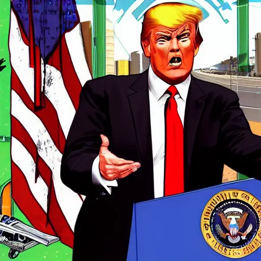 Donald Trump in GTA V, Cover art by Stephen Bliss, Boxart, loading screen