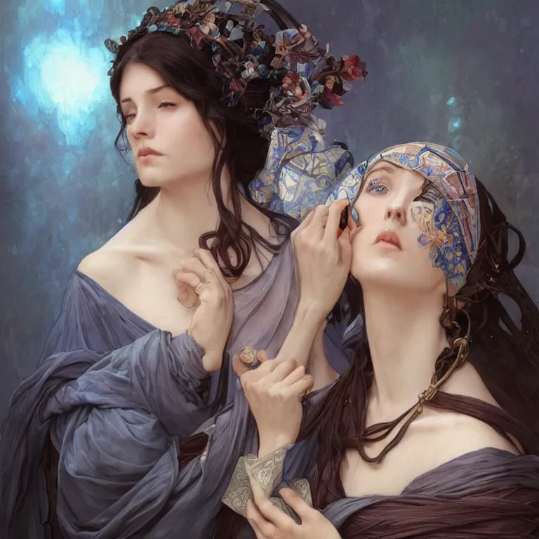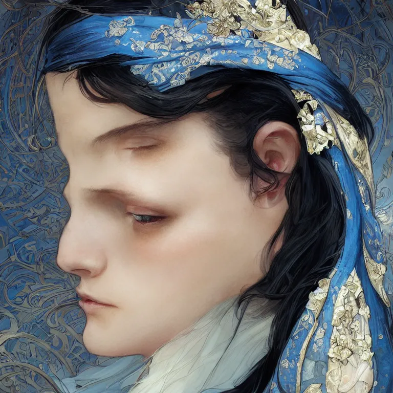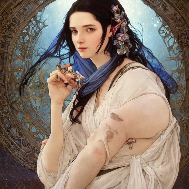 Portrait of female cleric with kerchief covering her ears. Blue eyes, black hair, porcelain skin,...Show more