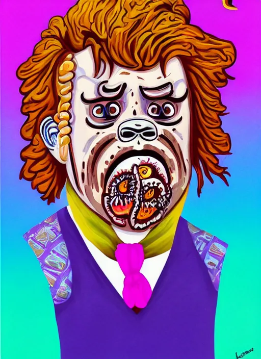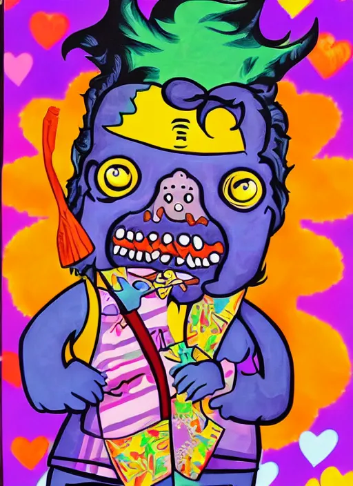 portrait of Leatherface in a cutesy style by Lisa Frank