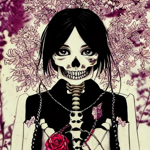 anime manga skull portrait young woman skeleton, graffiti, banksy, intricate, elegant, highly detailed, digital art, ffffound, art by JC Leyendecker and sachin teng
