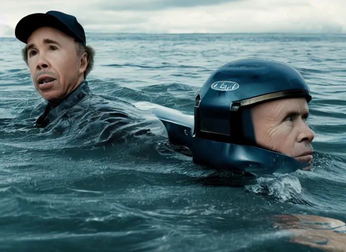 film still of Clint Howard in water with robot as Cooper in Interstellar, 4k