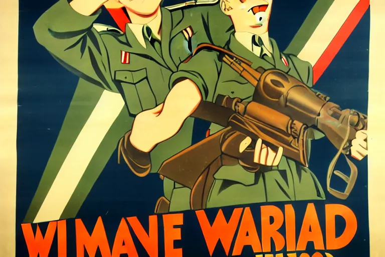 1940s, war, anime, poster, propaganda