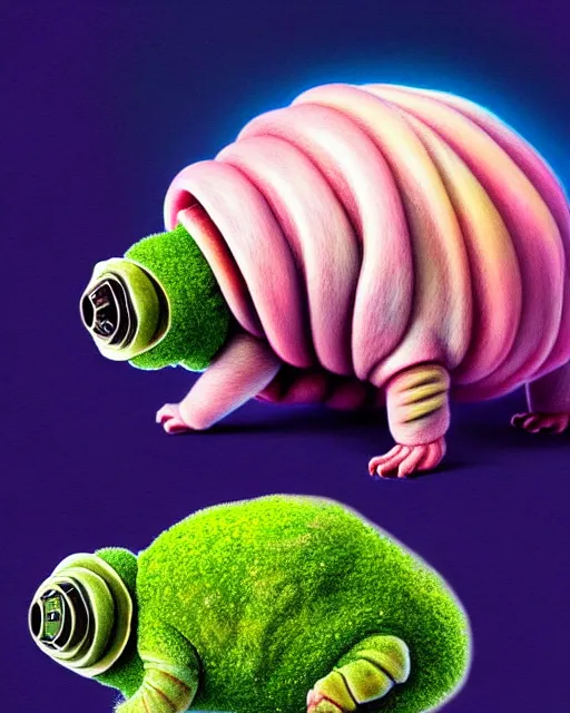 richly detailed color illustration of a tardigrade-moss-piglet illustrated by Artgerm and Mina Petrovic and Timothy Kong and Marina Federovna. 3D shadowing
