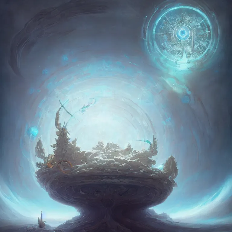 Giant Floating Circular Ancient Sacred Sublime Cosmic Structure by Peter Mohrbacher