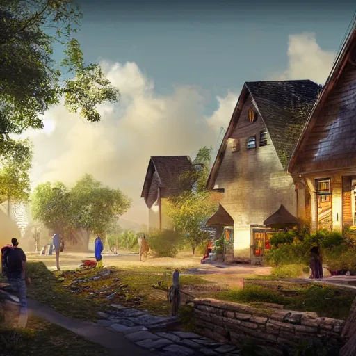 a very realistic digital art rendering and concept design of a modern village, with magnificent v...Show more