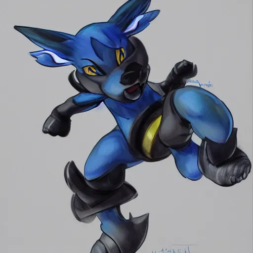 Portrait of Lucario, made by Yoji Shinkawa, Highly detailed, fantasy themed, dynamic posing