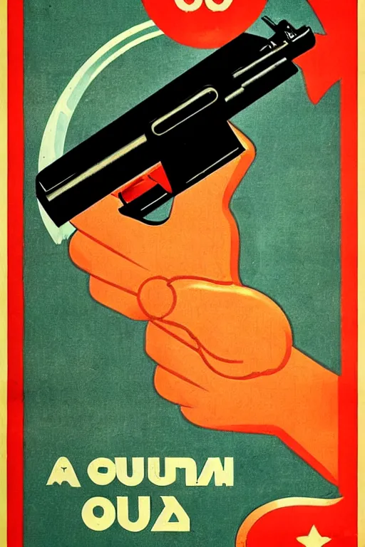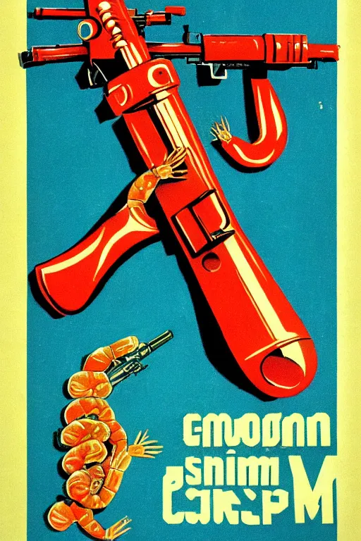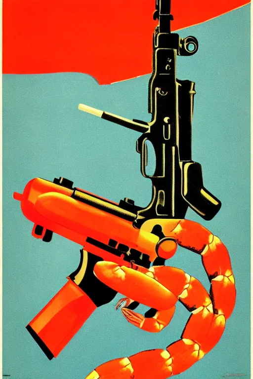 A shrimp in the shape of a gun; Soviet Propaganda Poster