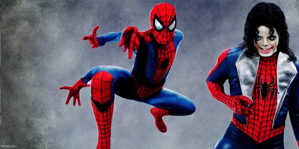 Michael Jackson 2000s wears a Spider-Man costume without a mask, poster, MCU, Marvel, ultra realistic, 4K, movie still, UHD, sharp, detailed, cinematic, render, modern