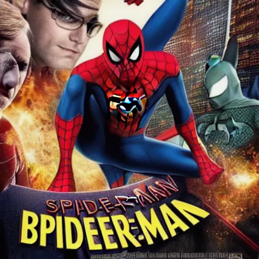 Prompt: Patrick Star as Spiderman, Movie poster,