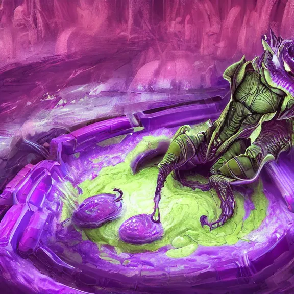 inside a cavernous stomach, the walls purple and pulsing, acid pooling inside, acid melting a sma...Show more