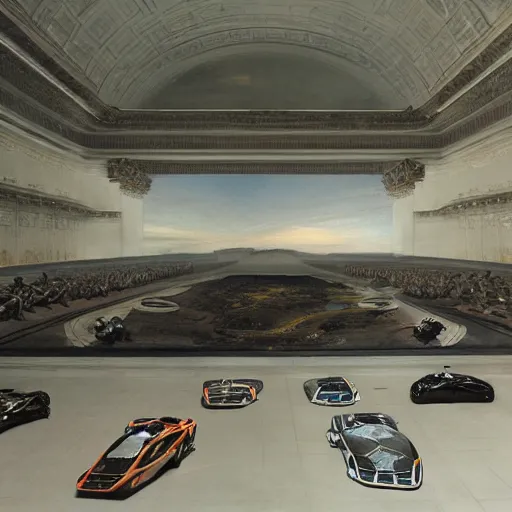 full lenght sci-fi cars in the coronation of napoleon painting by Jacques-Louis David in the blad...Show more